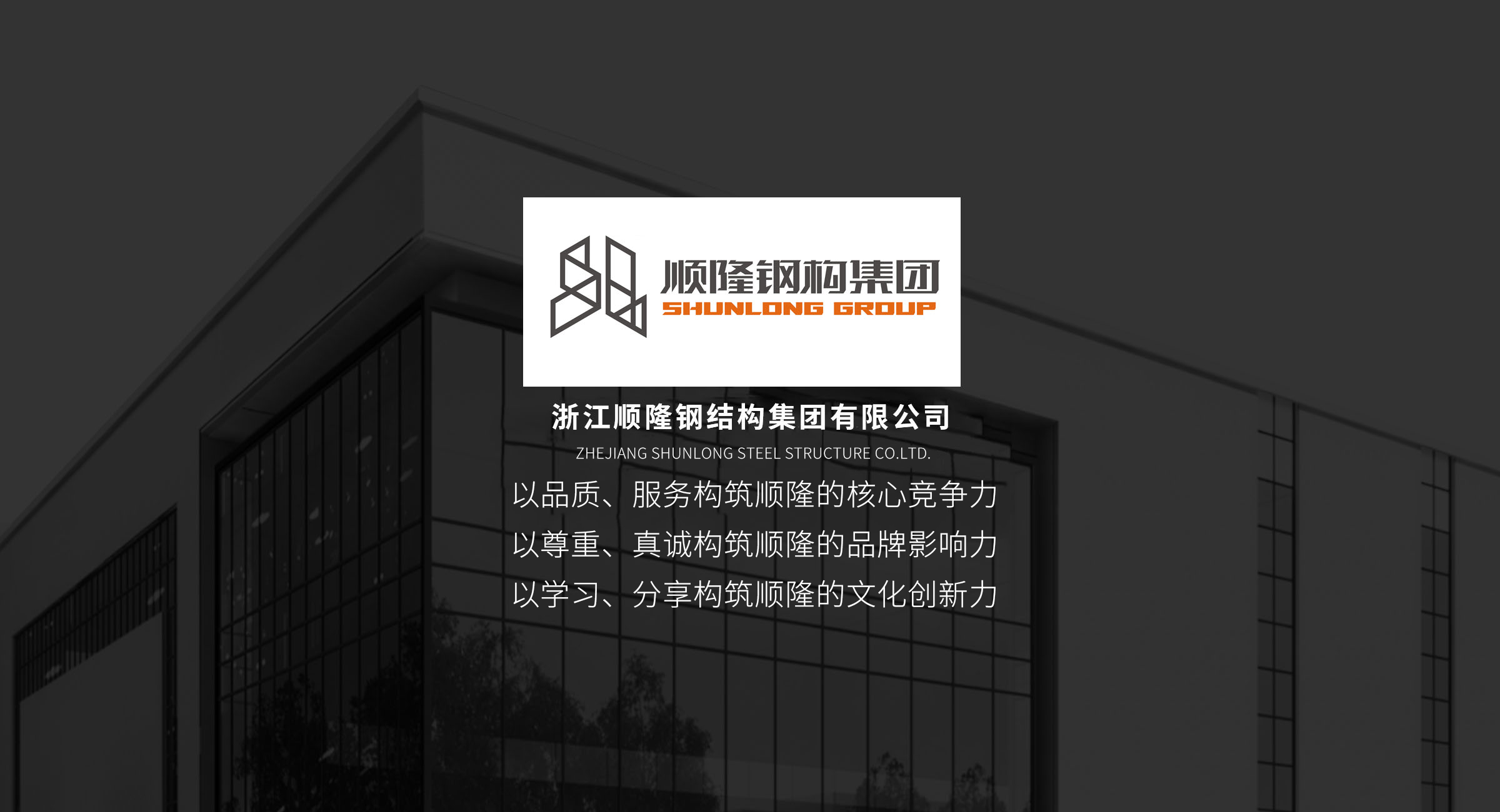 浙江顺隆钢结构集团有限公司(以下简称“顺隆钢构集团")创建于2011年,是一家集设计研发、生产制造、工程施工、建筑更新、材料销售于一体的综合性钢构企业,拥有建筑工程施工总承包贰级资质、市政公用工程施工总承包贰级资质、钢结构工程专业承包贰级资质、建筑装修装饰工程专业承包贰级资质以及特种工程(结构补强)专业承包资质。 公司现已布局两个生产基地,具备承接各类钢结构厂房、钢结构住宅、多(超)高层钢结构、大跨度空间钢结构、钢结构桥梁、钢结构艺术造型、建筑幕墙等工程的实力。温州数字化工厂凭借信息化、可视化、数字化集中管控平台,达成人机最佳匹配,效能实现最大化。通过各类高精密生产设备和检测仪器,全面掌控钢构件全生命周期信息,精准把控生产进度与质量标准,成为企业塑造核心竞争力的强劲引擎。 顺隆钢构集团系国家高新技术企业、浙江省专精特新中小企业、浙江省科技型中小企业、浙江省守合同重信用企业、浙江省钢结构行业协会理事单位、温州市钢结构协会副会长单位、温州市钢结构行业优秀企业,公司持有30余项专利及软著,通过了IS09001质量管理体系认证、1S014001环境管理体系认证IS045001职业健康安全管理体系认证。 顺隆钢构集团秉持“立足温州、辐射全国、迈向国际”的战略目标,持续拓展业务范畴,逐步进军全国市场,当下项目己广泛分布于浙江、江苏、江西、安徽、山东、福建、广东等众多省份。自创立以来,已圆满完成400 多个项目,多次荣“建筑业成长型企业”“建筑业开放型企业”,斩获浙江省钢结构“金刚奖”、温州市建设工程“瓯江杯”温州市优质钢结构工程、温州市优质桩基工程等殊荣。 顺隆钢构集团始终坚持“顺势筑房、隆基达业”的品牌发展理念,以先进的企业文化,科学的企业管理和卓越的技术创新,倾力打造“一流钢构专家”的品牌形象,并致力于成为中国绿色建筑的忠实倡导者和守护者。